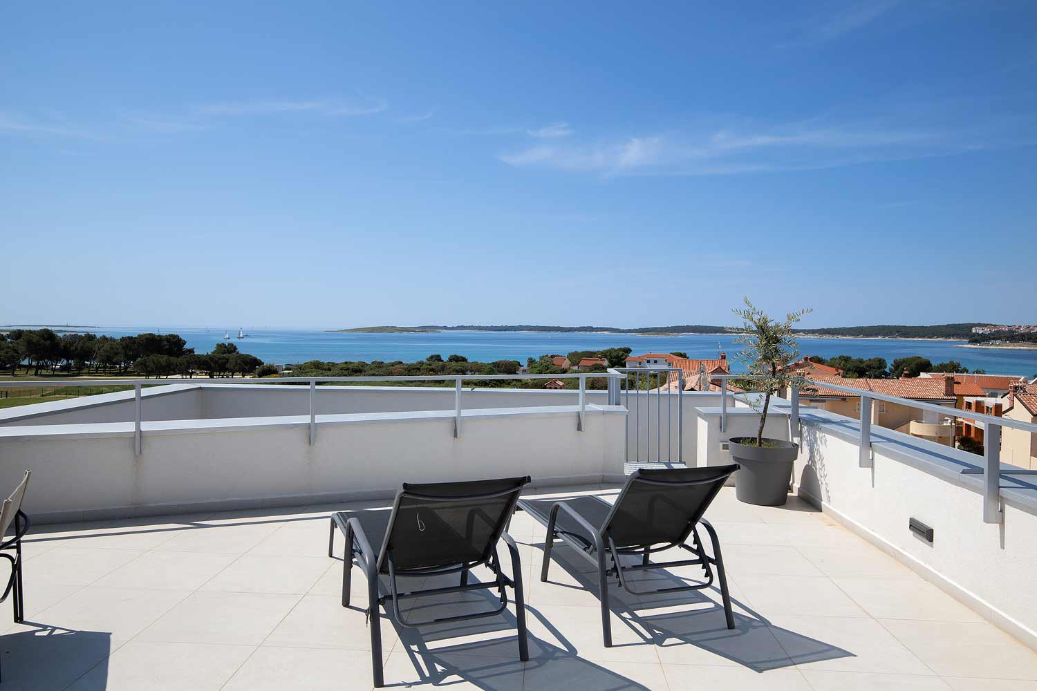 Es ist der Augenblick….der Augenblick an dem Sie die Dachterasse betreten und Ihr Blick auf die Medulin Bay fällt.